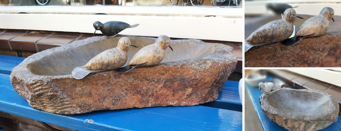 In de winkel hebben we altijd wel een paar mooie waterbakjes op voorraad! Meestal staan ze buiten op het bankje. Elk bakje is uniek want handgemaakt.