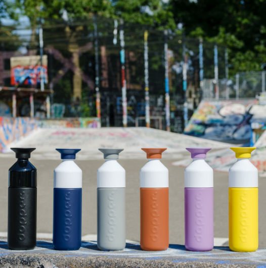 Het flesje is ontworpen door een Nederlandse ontwerpster en wordt in Nederland klimaat neutraal en vrij van BPA geproduceerd. Doppers zijn inmiddels in vele kleuren verkrijgbaar verkrijgbaar, inclusief de hele lijn van Dopper Insulated. Aan jou de keuze!